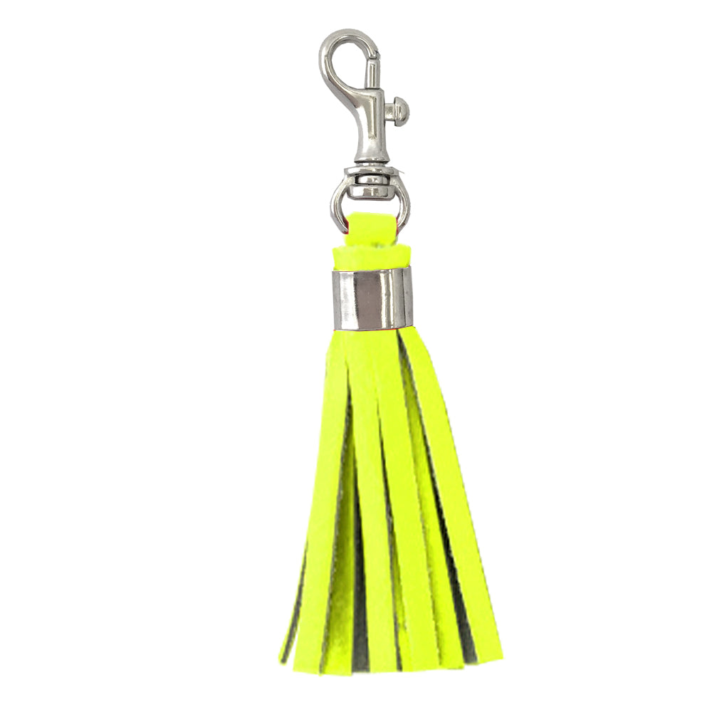 Multipurpose clip tassel. This item can be used as a keychain or a decorative accessory for your purse, leather pouch or clutch. Measures 4 1/2" long including clip.