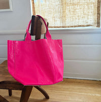 Rebecca totes shown with our Hexagon Logo Safety Pin attached to the strap.