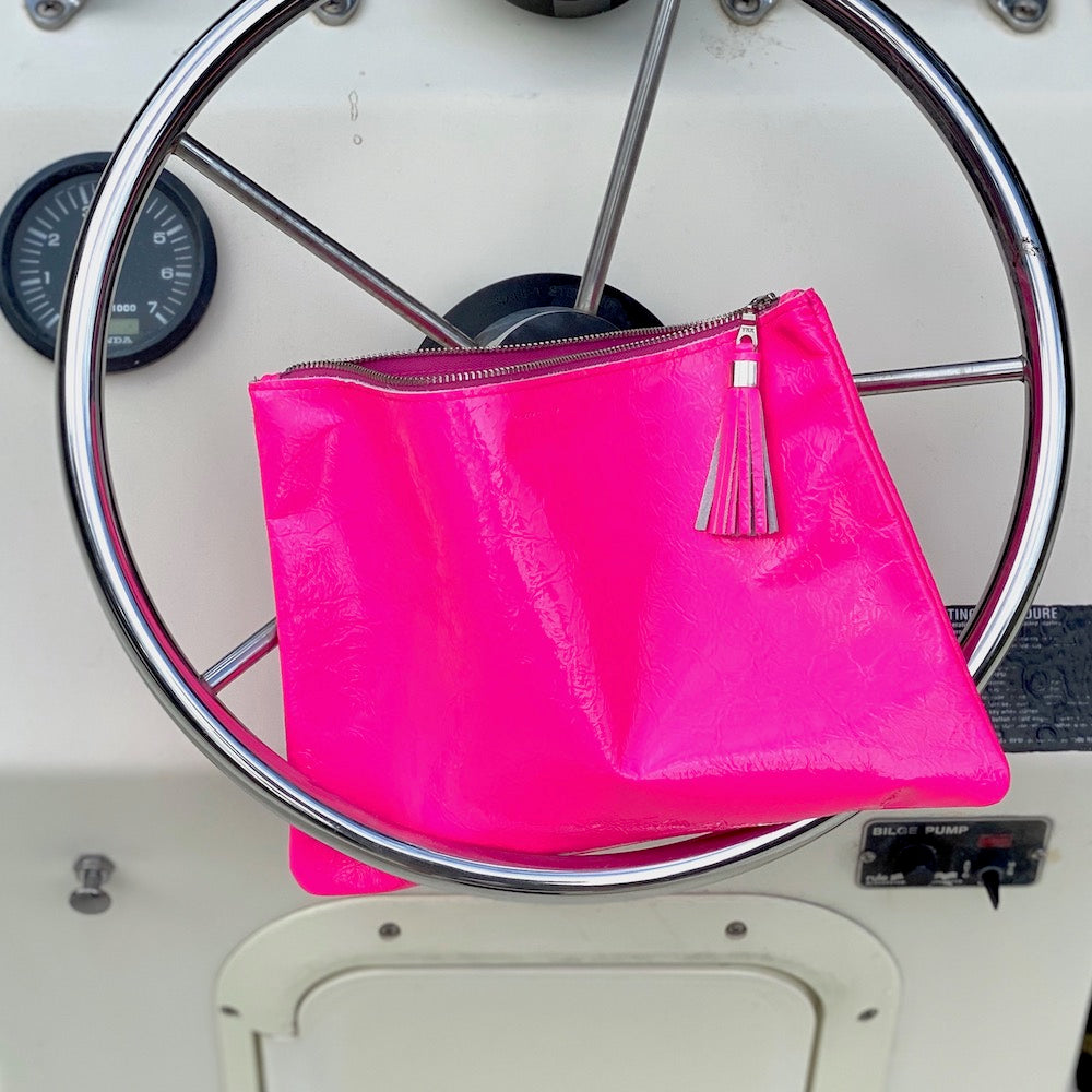 The XL Zip pouch is perfect to carry as a clutch or to organize your purse. Measures 11 1/4” W x 8” H with an attached clip tassel pull.