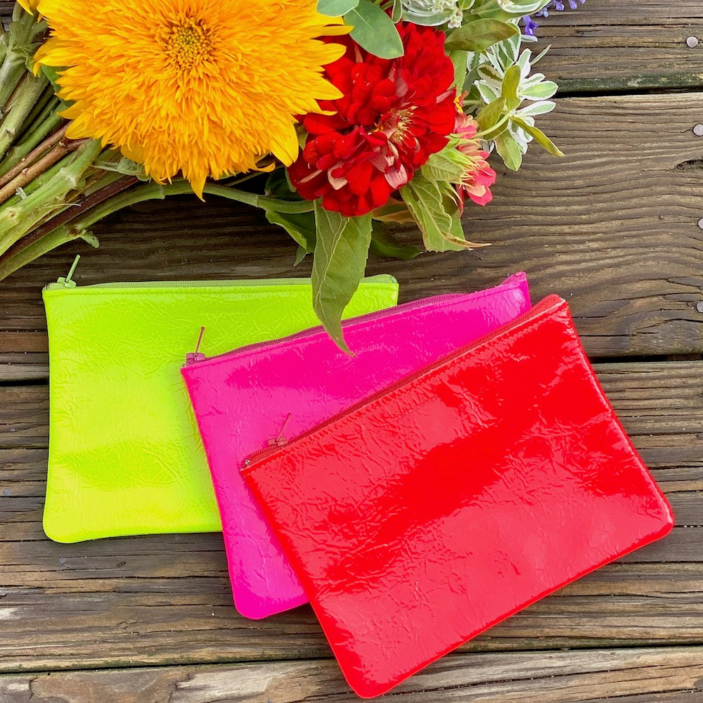 This flat zip-top pouch can be used to hold your cosmetics, cards, keys and other personal items. Carry it alone or use it to organize your purse.