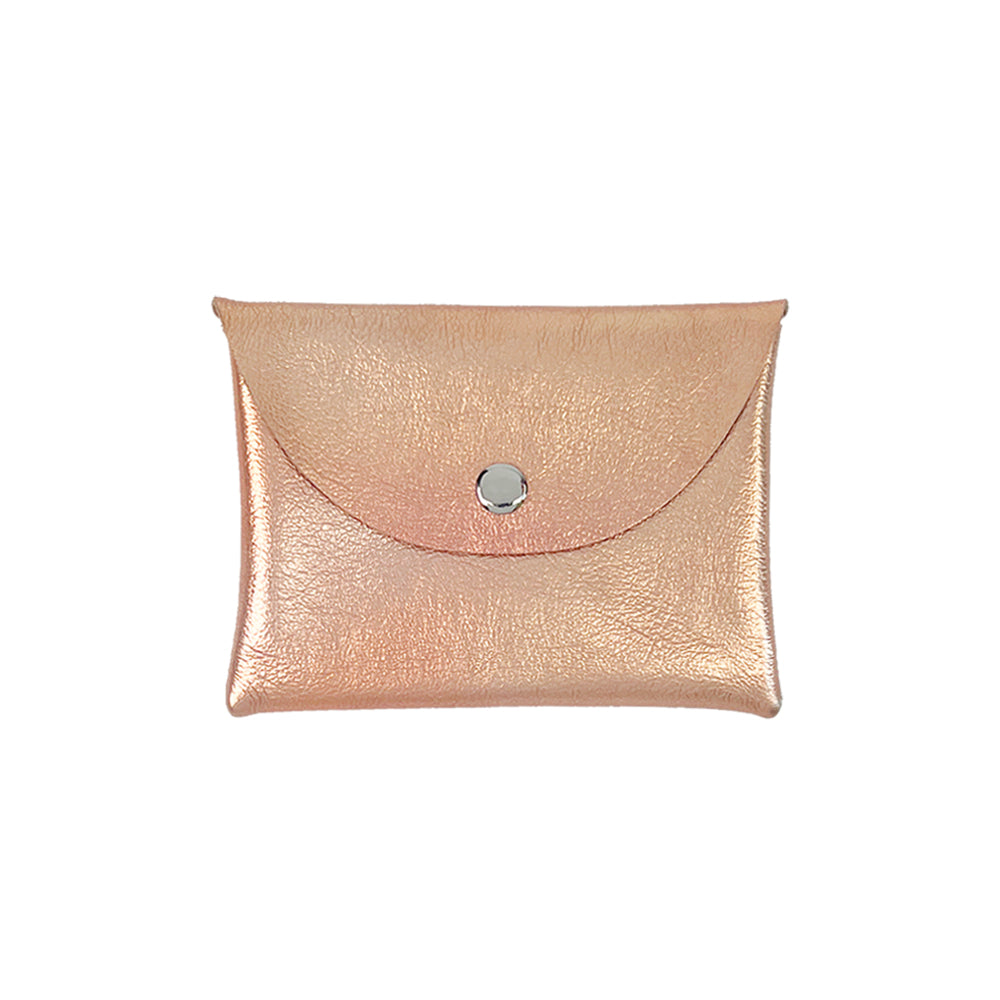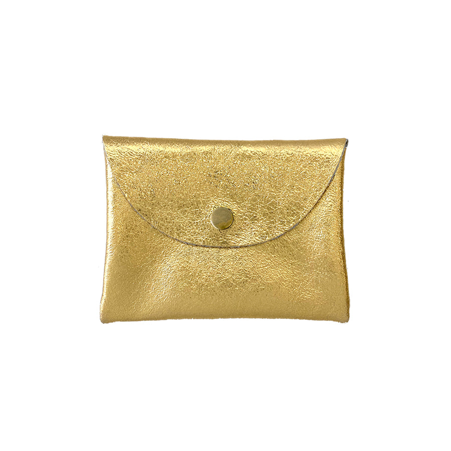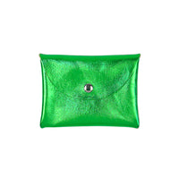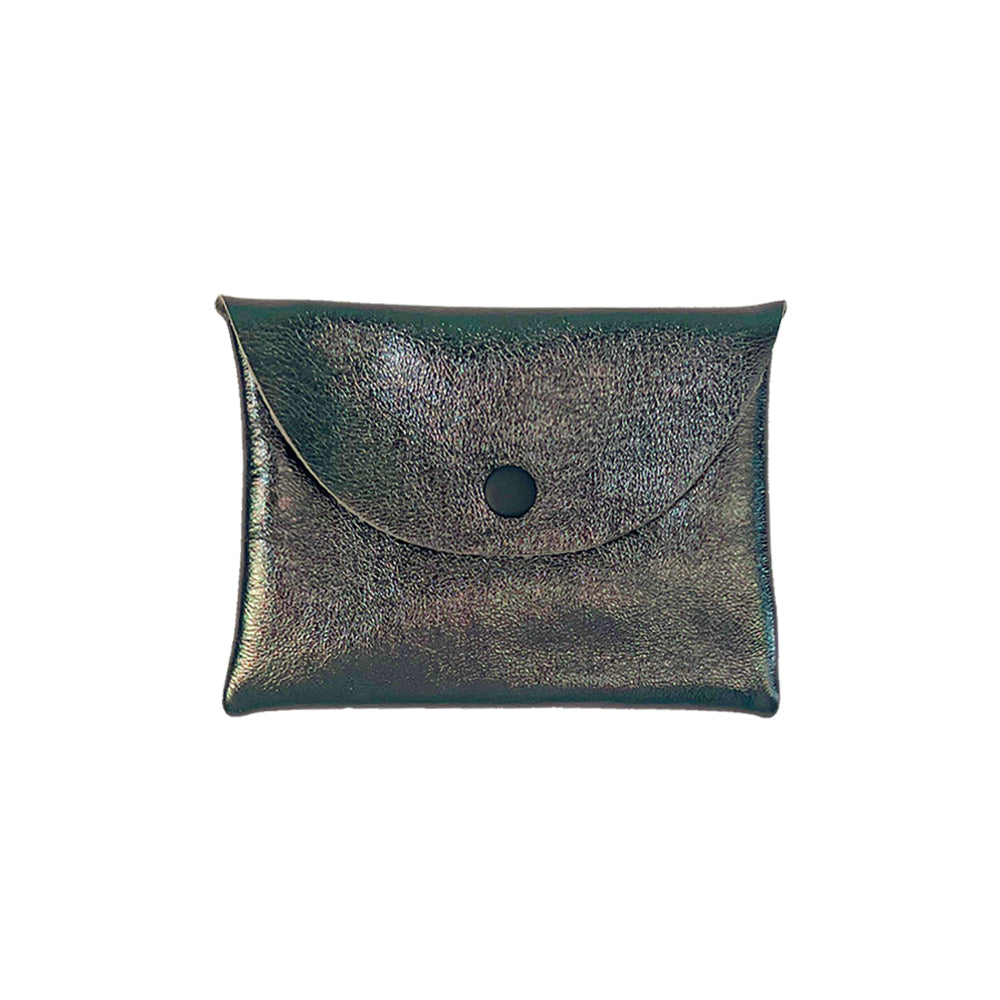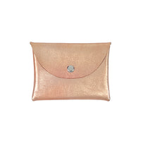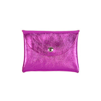 Leather flat pouch with a snap envelope closure. Great for carrying your cash, keys, credit cards and other small items. Perfect to throw in a tote or backpack or use as a simple wallet.