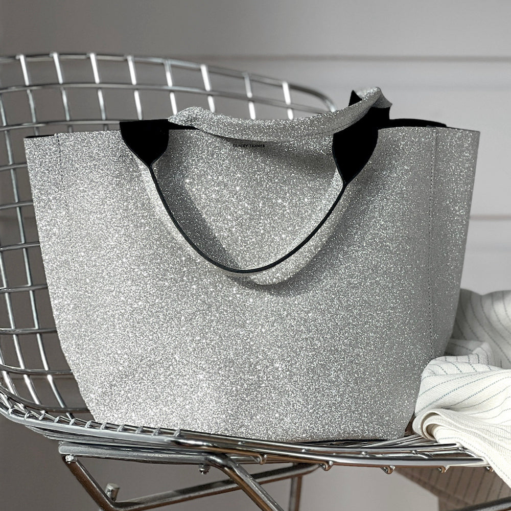 Ultra lightweight Rebecca leather tote in the limited edition sparkle zebra and sparkle tiger hides featuring: