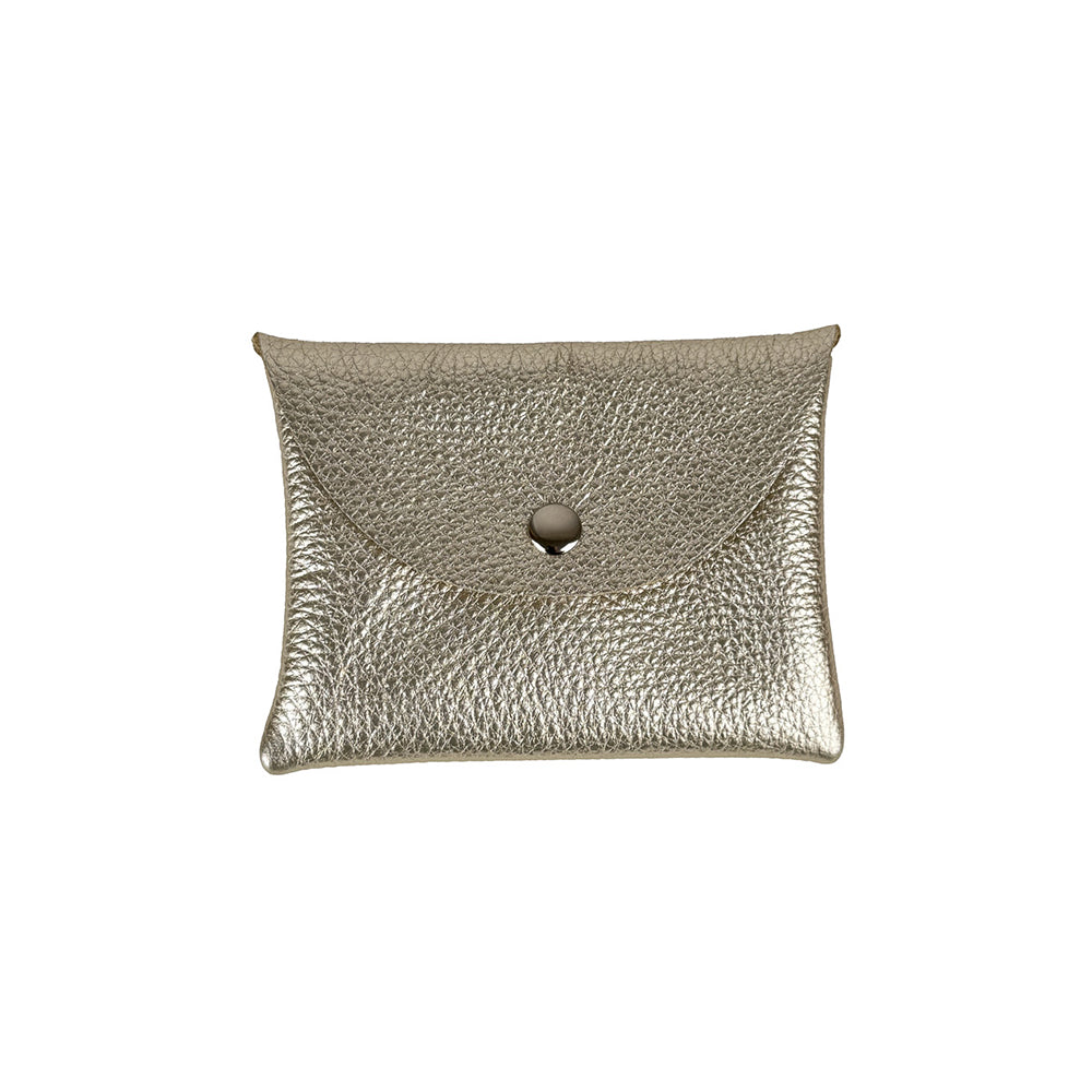 Leather flat pouch with a snap envelope closure. Great for carrying your cash, keys, credit cards and other small items. Perfect to throw in a tote or backpack or use as a simple wallet.