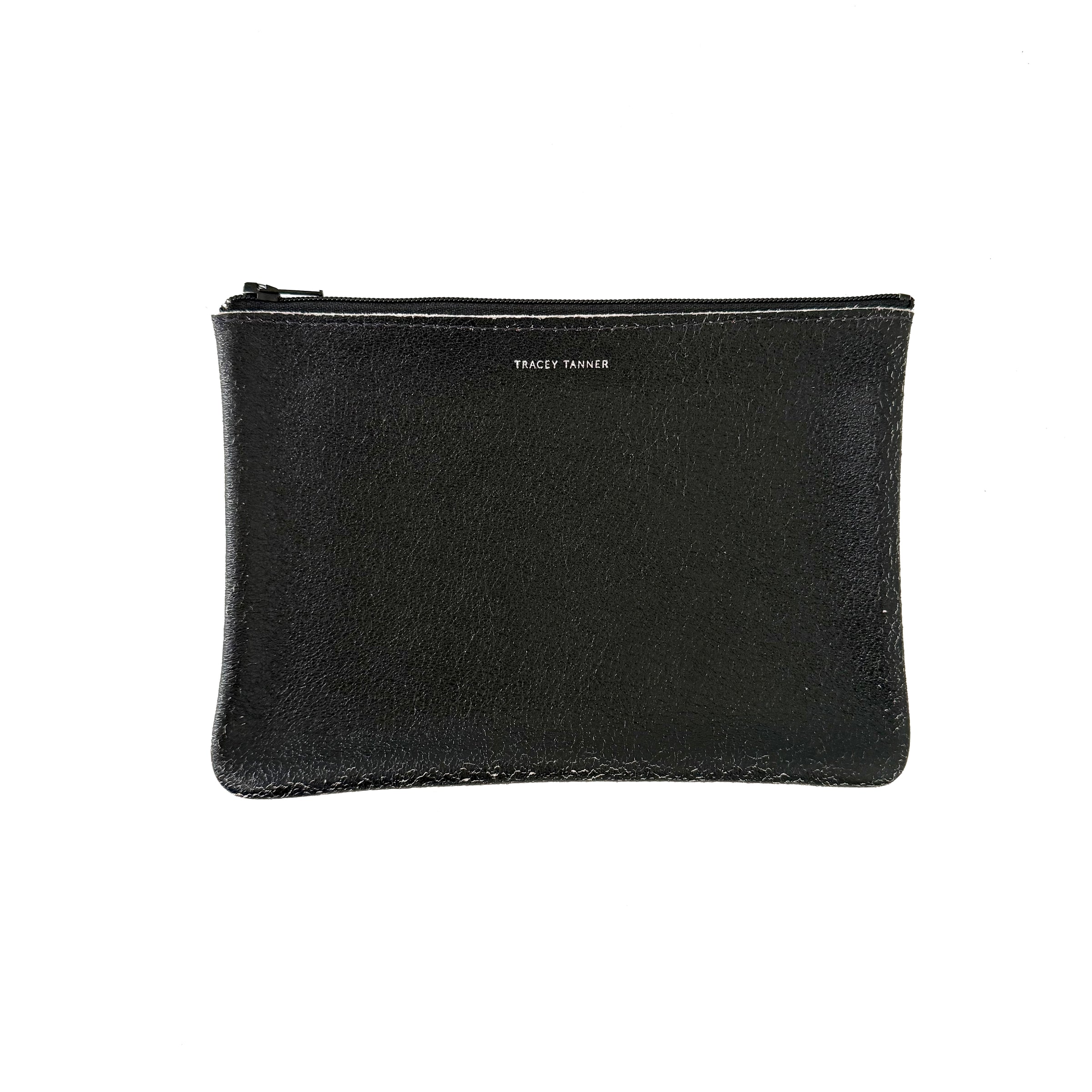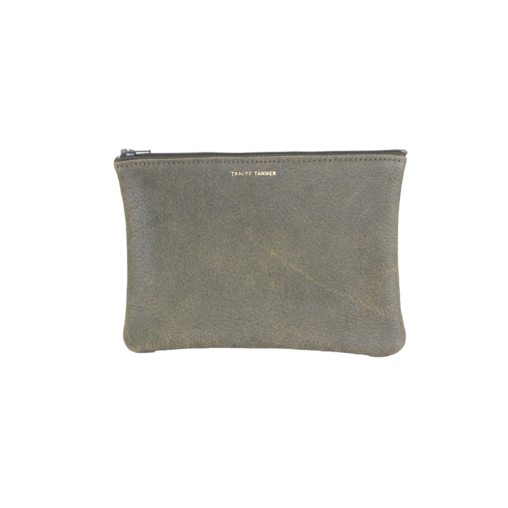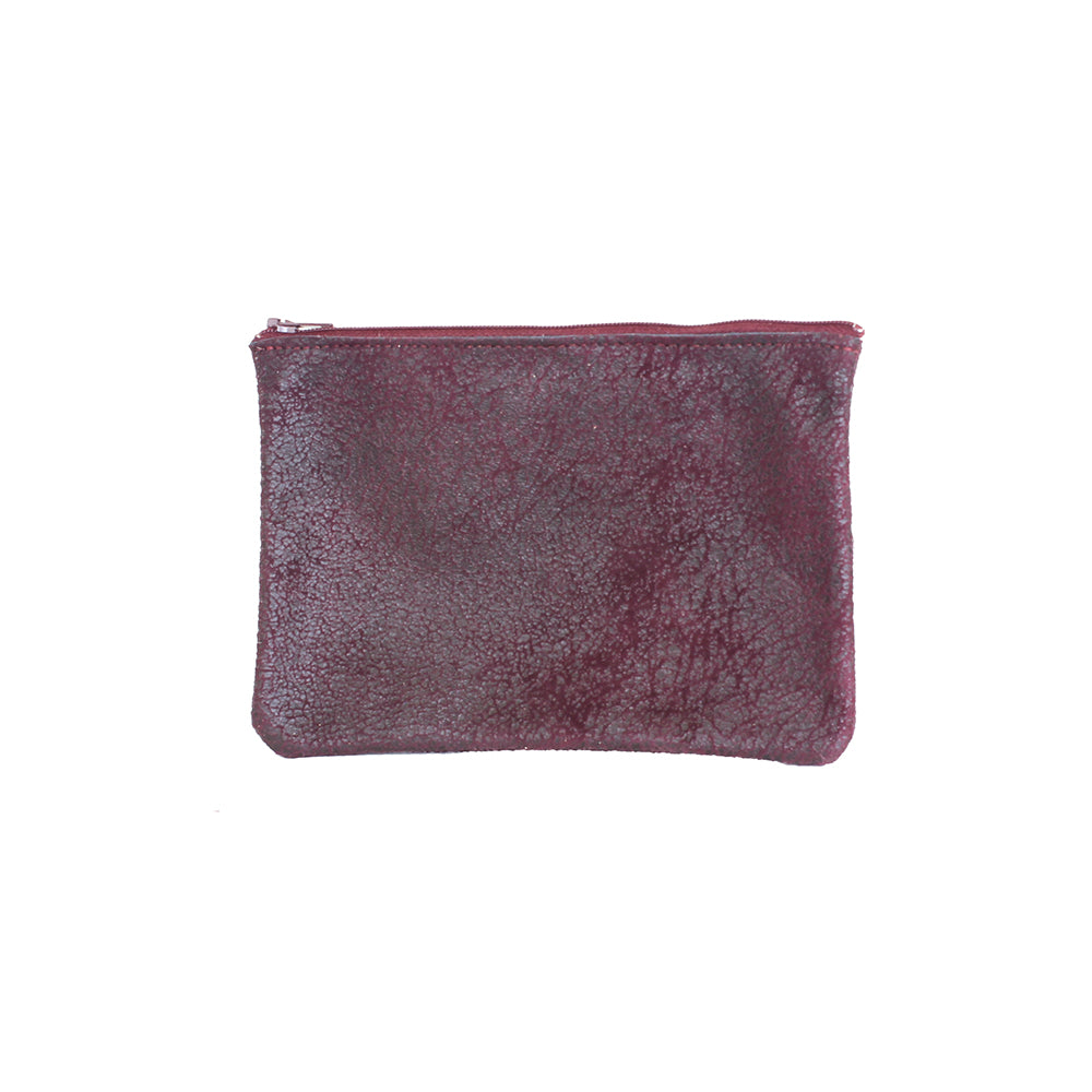 Leather flat zip-top pouch perfectly sized to carry your phone, cash, credit cards and/or cosmetics: Use it to organize your essentials in a larger bag or carry it alone as a clutch.