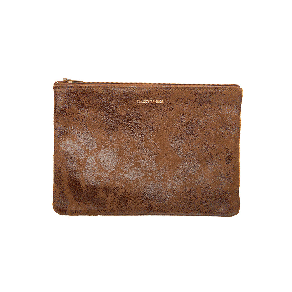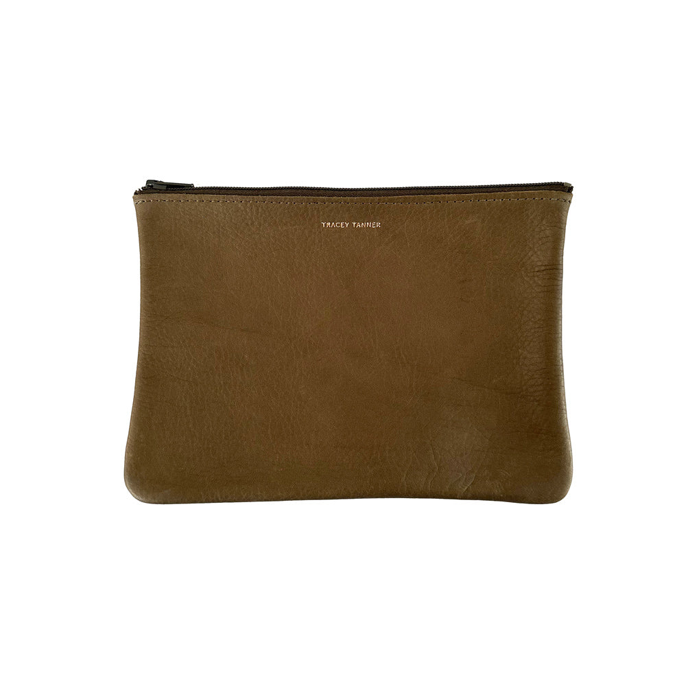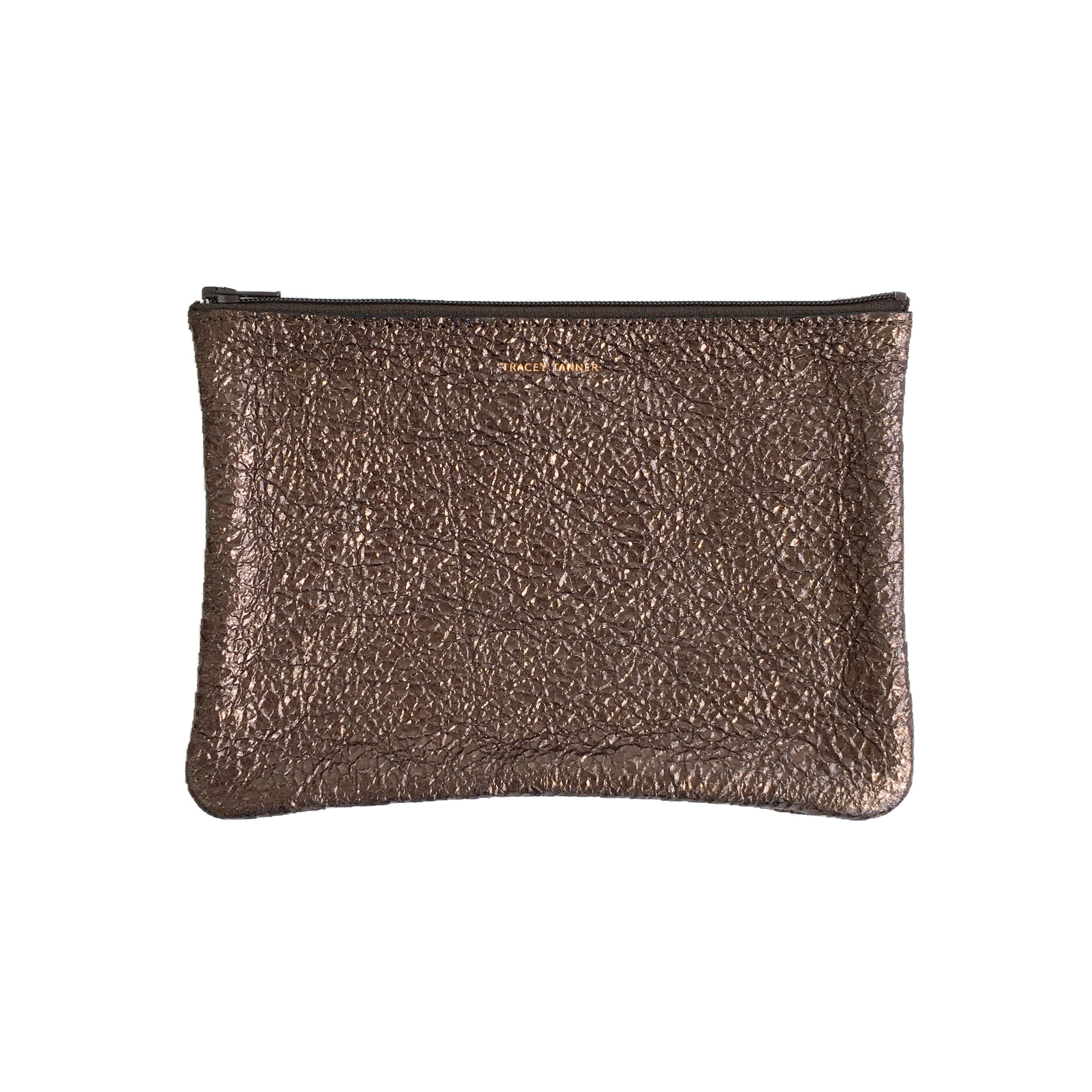 Leather flat zip-top pouch perfectly sized to carry your phone, cash, credit cards and/or cosmetics: Use it to organize your essentials in a larger bag or carry it alone as a clutch.