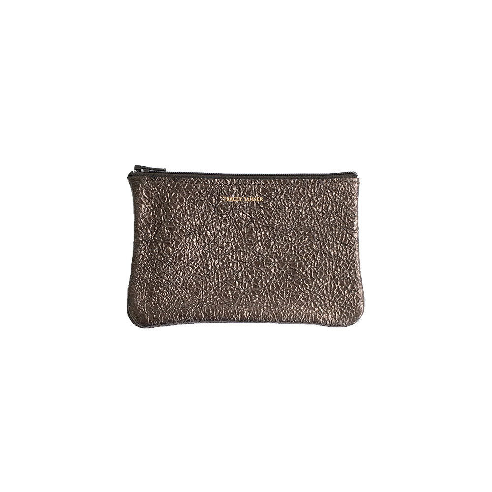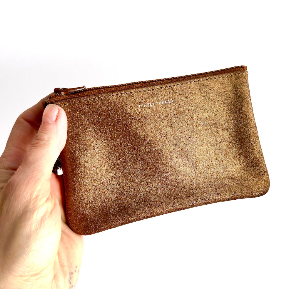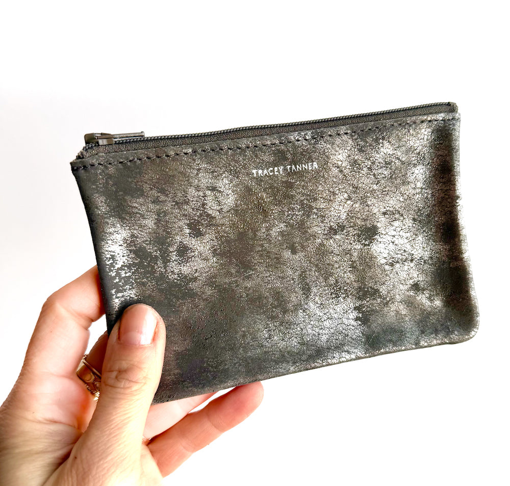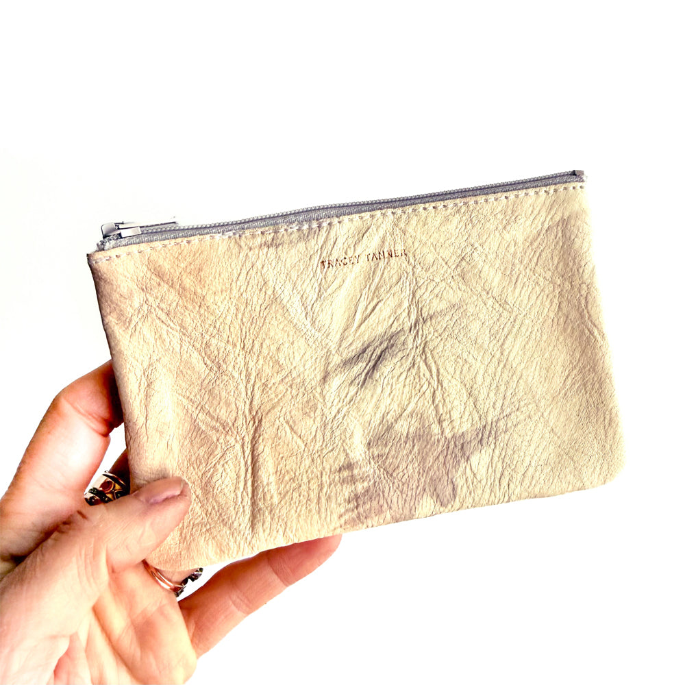 This flat zip-top pouch can be used to hold your cosmetics, cards, keys and other personal items. Carry it alone or use it to organize your purse.